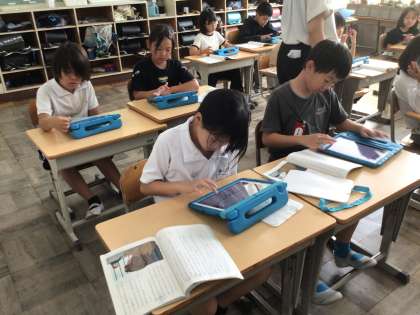 物語文「サーカスのライオン」の学習です。主人公じんざの気持ちが動いたところはどこか考えました。じんざの気持ちの変化を矢印で表したものを使って学習しました。