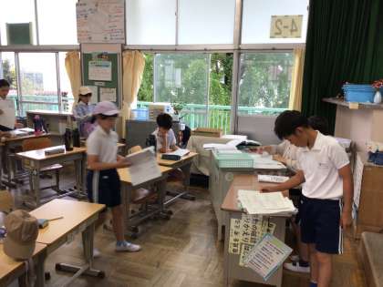 今日はかがやきの時間はなしで8時25分から朝の会を実施します。時間を意識して朝の支度を進めていました。6年は修学旅行の大きなカバンをもって登校しました。