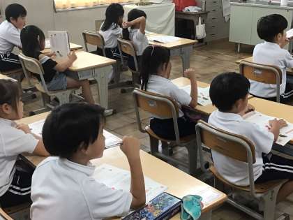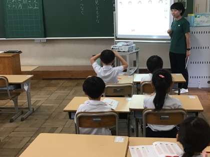 10/14 1年生国語 公開日 2025/10/14 更新日 2025/10/14 各学年から 1年生国語では、「何に見えるかな」の学習をしています。今日は、「先生と話そう」というめあてで、話をつなぐために、どんな言葉を使うとよいか考えました。