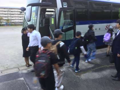 10/15 6年生修学旅行 バスで出発 公開日 2025/10/15 更新日 2025/10/15 各学年から 各クラス、バスに乗り出発しました。バスの中では、クイズやゲームなどみんなが楽しめることも計画しているようです。