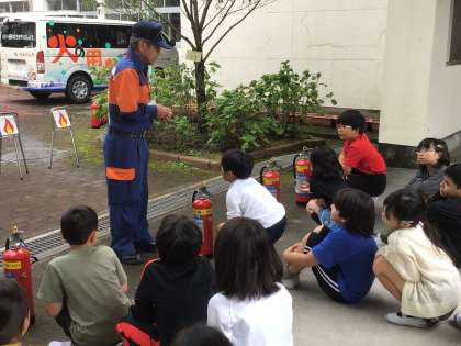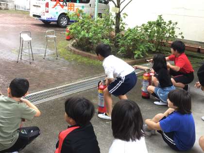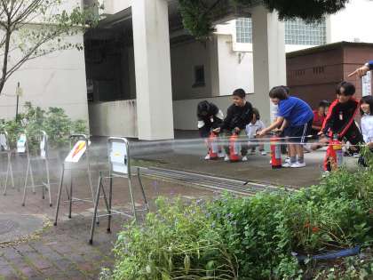 10/15 3年生消火器体験 公開日 2025/10/15 更新日 2025/10/15 各学年から 3年生は消火器を使って、火を消す体験をしました。「火事だ」と大きな声で叫んでから、火のパネルを目掛けて消火器を使って的にあてる体験をしました。