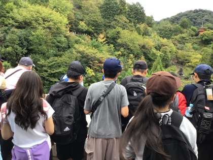 清水の舞台を見ました。舞台からの景色も楽しみました。すごい人混みですが、学級でかたまって行動ができました。