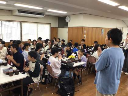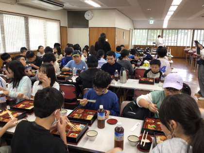 清水寺門前の梅山堂で昼食です。今日はいつもより朝食が早かったのでおなかがすいたようです。いただきますをして、大喜びで食べていました。