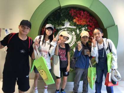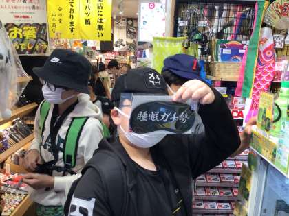 清水寺参道での買い物の様子です。たくさんの店があって、「これおいしそう」って言いながら買い物を進めていました。時間を意識して全員が駐車場に戻ることができました。