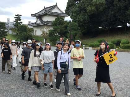 予定よりも早く二条城に着きました。うぐいす張りの床や襖絵などを静かに見ることができました。