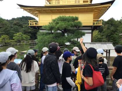 10/15 金閣寺3 公開日 2025/10/15 更新日 2025/10/15 各学年から 金閣寺の見学の様子です。広い境内を学級ごとにかたまって回りました。約20キロの金が使われているそうです。ピカピカできれいでしたね。五山の送り火で有名な「大」の字も見えましたね。