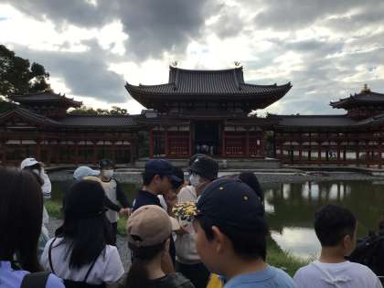 10/15 宇治平等院2 公開日 2025/10/15 更新日 2025/10/15 各学年から 平等院鳳凰堂の前で写真撮影をした後、ミュージアムへ移動して極楽の世界を表現した美術品や仏像等を見学しました。順調に宇治平等院に到着できたので、予定よりも30分早く出発して奈良の宿に向かいます。