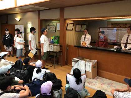 10/16 退館式 公開日 2025/10/16 更新日 2025/10/16 各学年から 朝食後部屋から荷物を運び出し、ロビーで退館式を行いました。代表の子や旅館の方の話を大変よい姿勢で聞くことができました。感謝の気持ちを態度や姿勢でも示すことができました。
