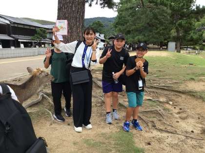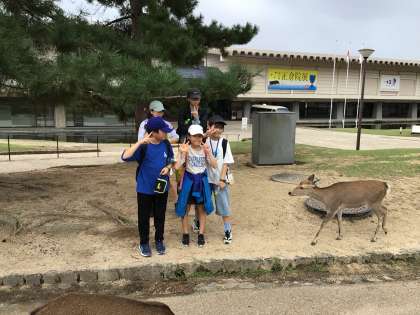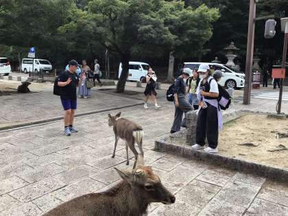10/16 奈良公園班別学習2 公開日 2025/10/16 更新日 2025/10/16 各学年から 奈良公園内は約1200頭のシカがいると言われています。シカせんべいを購入した班もあり、いっぱいシカが寄ってきて大慌てでした。