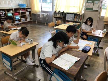 あまりのあるわり算の復習として算数の友の問題を解きました。早く終わった子はミニ先生として活躍しました。