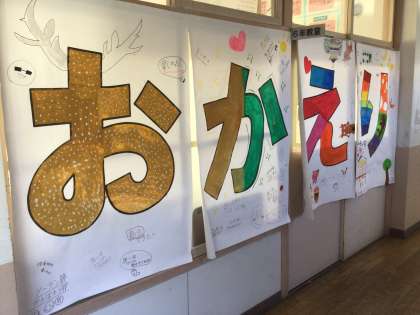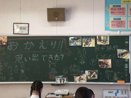 10/17 6年生修学旅行のまとめ3 公開日 2025/10/17 更新日 2025/10/17 各学年から 5年生が6年生に向けて「おかえり」のメッセージを廊下に準備したり、各クラスの黒板にメッセージを書いたりしてくれました。5年生の気持ちが嬉しいですね。