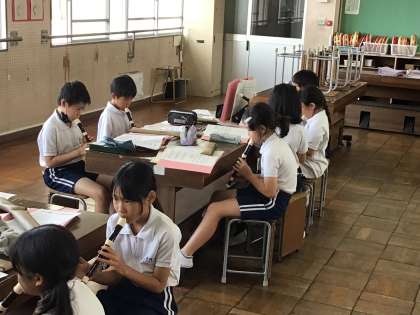 10/17 4年音楽 公開日 2025/10/17 更新日 2025/10/17 各学年から 4年音楽では、「ビリーブ」や「いろんな木の実」を歌ったり、リズム練習として「楽しいマーチ」で手拍子をしたりしました。リコーダー練習では音色に気をつけて演奏することができました。「リズムアンサンブルをつくろう」というめあてで学習を進め、ことばで8小節のリズムアンサンブルをつくってみました。