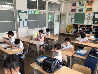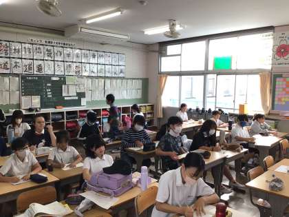 雨上がりの朝となりました。元気よく通学団会で登校してきました。教室では友達と談笑しながらもてきぱきと朝の支度を進めていました。今週は木曜日が4時間授業、給食・清掃後13時50分下校になりますので、ご確認ください。