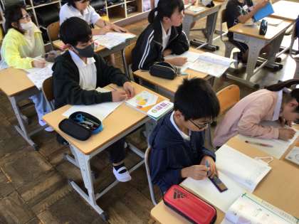 10/20 5年算数1 公開日 2025/10/20 更新日 2025/10/20 各学年から 5年算数は少人数に分かれて学習をしていました。「三角形の面積の公式をつくろう」というめあてで学習を進めていました。