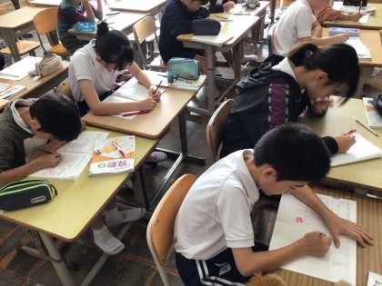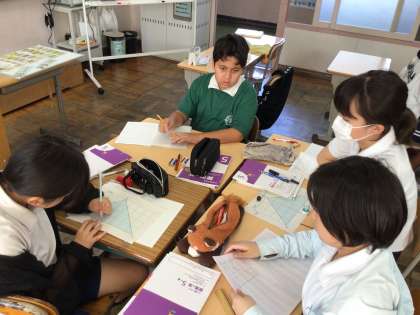 今日の少人数での学習の様子です。先週末までに学んだことを生かして、三角形の面積の求め方を考えていました。