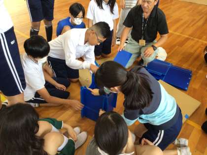 10/20 6年避難所設営体験4 公開日 2025/10/20 更新日 2025/10/20 各学年から 簡易トイレの組み立てて方の説明を聞いた上で、実際に組み立ててみました。意外と簡単に組み立てることができるので驚いていました。