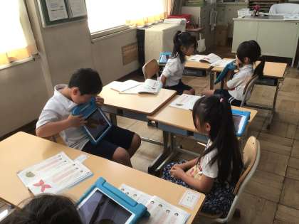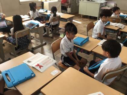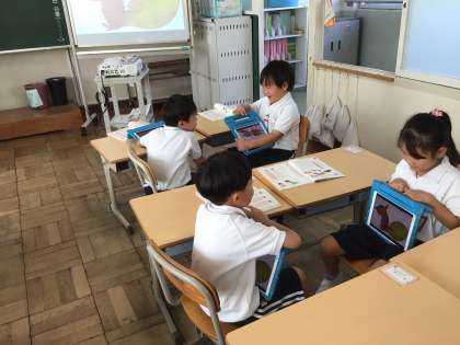 10/20 1年生国語 公開日 2025/10/20 更新日 2025/10/20 各学年から 1年生国語では、「何に見えるかな」の学習をしています。楽しく話をつなげるためには、どのような言葉があるか考えました。そのことばをつかって友だちと話をしました。学習用タブレットを見せながらペアで話をしました。