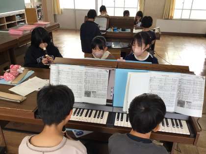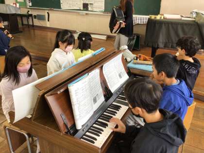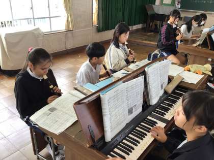 10/21 5年音楽 公開日 2025/10/21 更新日 2025/10/21 各学年から 5年音楽では、「キリマンジャロ」という曲を練習しています。リコーダーやオルガンを使って全部で3パートに分かれて演奏をします。「最後まで合奏しよう」というめあてで学習を進めていました。