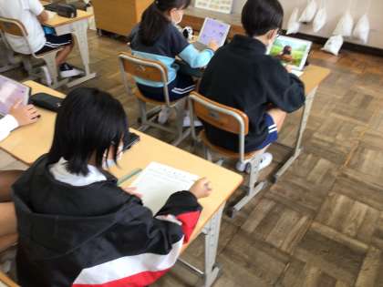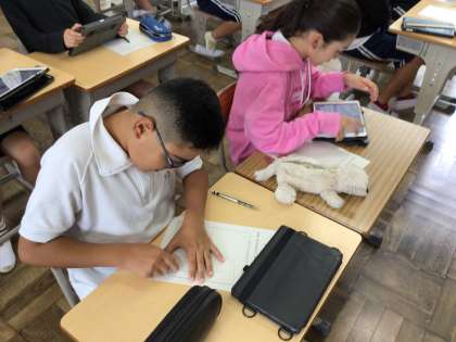 6年図工では、1枚の板からという作品作りに入ります。色や形、つくり方を工夫して生活に役立つ楽しい入れ物をつくるというものです。作品づくりの前に今日はアイデアスケッチをしていました。