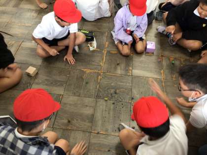10/21 やまびこ遊び2 公開日 2025/10/21 更新日 2025/10/21 特色ある学校づくり推進事業 今日のやまびこ遊びの様子です。長生きごまの練習なので、係の子がタブレットのタイマーを使ってタイムを計測しています。どんぐりごま大会は10月29日の2限目に体育館で実施します。昨年同様保護者の参観も可能です。よろしくお願いします。