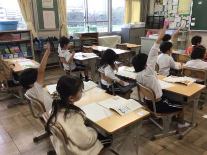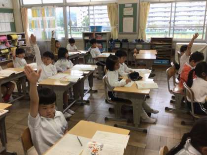 10/22 1年生国語2 公開日 2025/10/22 更新日 2025/10/22 各学年から 今日の1年生国語「サラダでげんき」では、「りっちゃんにサラダに入れるとよいものを教えよう」というめあてで学習しました。どんなものを入れるとよいか、本文を読んで考えて発表しました。