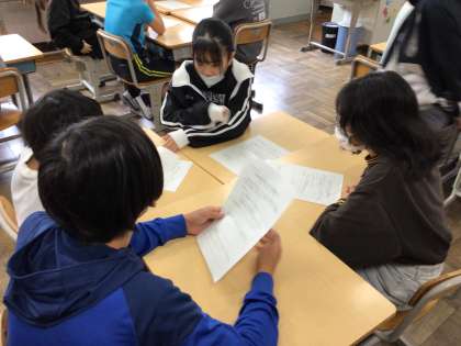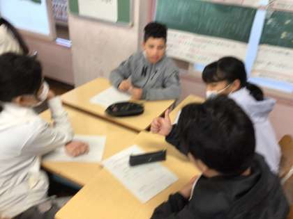 10/23 6年学活 公開日 2025/10/23 更新日 2025/10/23 各学年から 6年学活では、「やまびこフェスティバルのスローガンを決めよう」というめあてで進めていました。班で話し合いが進んでいました。