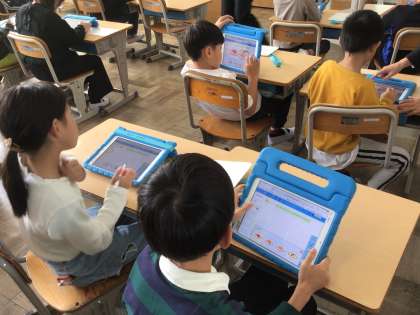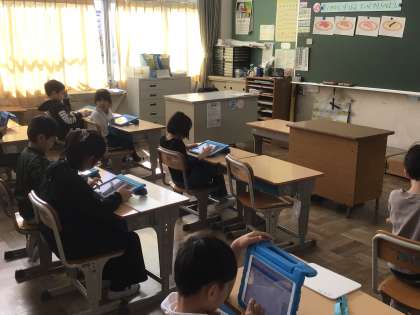 2年生算数では、「かけ算」の学習をしています。今日は「答えがいくつずつ増えていくかを調べました。学習用タブレットをつかって、お寿司の数がいくつずつ増えていくか操作しながら考えました。