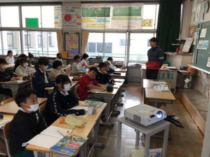 5年社会では、水産業のさかんな地域の単元を学んでいます。「水産資源を守るための人々の取り組みや工夫について調べよう」というめあてで学習を進めていました。養殖や赤潮についての解説動画を真剣に視聴していました。