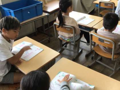 2年生算数「かけ算」の学習で、今日は2の段の九九を学習しました。2の段を見ないで暗唱することができるように、練習しました。