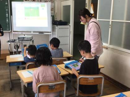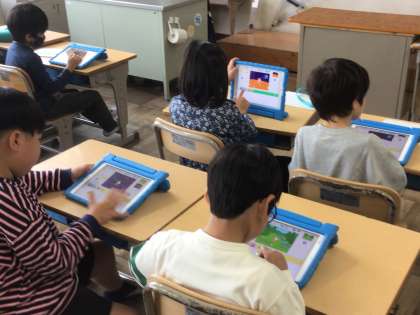 10/24 2年生プログラミング学習 公開日 2025/10/24 更新日 2025/10/24 各学年から 2年生では、学習用タブレットをつかって、「プログラミング」学習を行いました。アプリの「スクラッチ」をつかって、どのようにしたら絵が動くか考えて作りました。ICT支援員さんにも教えていただきながら進めました。
