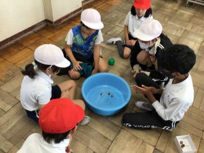 10/24 やまびこ遊び2 公開日 2025/10/24 更新日 2025/10/24 特色ある学校づくり推進事業 今日のやまびこ遊びの様子です。けんかごまの練習をしていました。誰のコマが強かったかな?