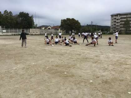 5、6年生体育「ソーラン節」運動場で練習
