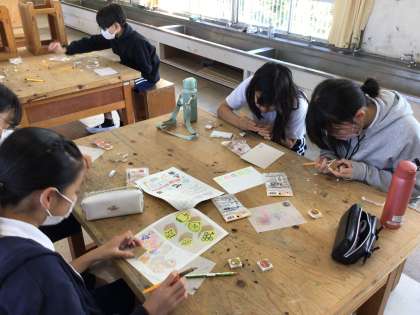 10/27 クラブ1 公開日 2025/10/27 更新日 2025/10/27 各学年から 1〜4年生は5時間で下校し、5・6年生はそれぞれの活動場所に移動してクラブ活動を行いました。今日の昔遊び、クラフトクラブの活動の様子です。
