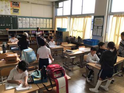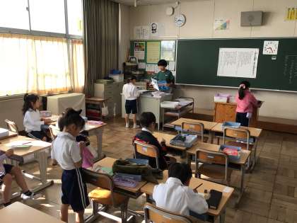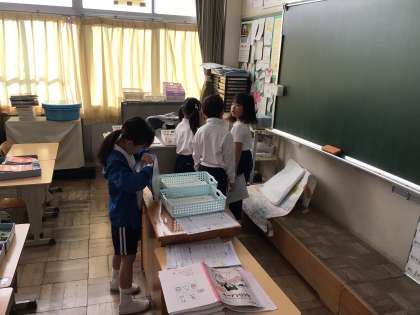 今朝は9度とこの秋一番の冷え込みとなりました。8時を過ぎると少しずつ子どもたちの元気な声が聞こえてきました。教室では時間を意識しながら朝の支度を進めていました。