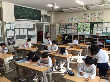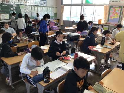 朝の支度をしながら友達と談笑する姿が見られます。また、元気なあいさつの声も気持ちがいいですね。
