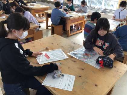 10/30 5年図工 公開日 2025/10/30 更新日 2025/10/30 各学年から 5年図工では、ミラクル!ミラーワールドの作品づくりに入ります。初回なので、鏡の特徴を含めたどのような作品を作るのか概要説明の後、教材が配られ、袋の中のパーツに記名をしていました。アイデアスケッチをしてから作品づくりに入る予定です。