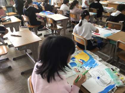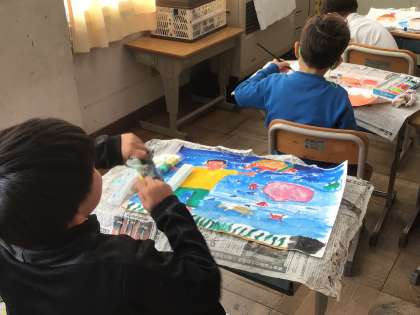 10/30 3年生図工 公開日 2025/10/30 更新日 2025/10/30 各学年から 3年生図工では、「読書感想画」の学習をしています。今日は、絵の具を使って、絵を完成させることを目標に取り組みました。