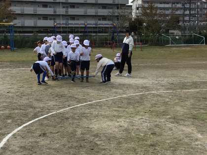 10/30 34年生合同体育 公開日 2025/10/30 更新日 2025/10/30 各学年から やまびこフェスティバルに向けて、3、4年生一緒に「台風の目」の練習をしました。4年生を中心に作戦を話し合ったり、棒を飛び越す練習をしたりしました。