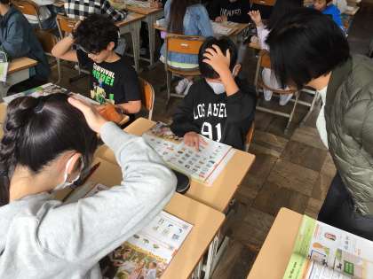 10/30 5年外国語 公開日 2025/10/30 更新日 2025/10/30 各学年から 5年外国語では、「道案内のやり取りを聞いて表現をつかもう」というめあてで学習を進めていました。音楽に合わせて一緒に発音練習をしながらペアで活動していました。
