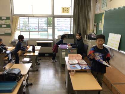 10/31 朝のひととき 公開日 2025/10/31 更新日 2025/10/31 各学年から どんよりした曇り空のもと、いつも通り登校してきました。今朝は13度で冷え込みはありませんが、午後の天候が心配です。教室ではいつもの朝の支度に加え、フッ化物洗口のコップを準備していました。