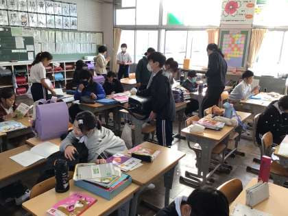 11/4 朝のひととき2 公開日 2025/11/04 更新日 2025/11/04 各学年から 教室では、いつものように時間を意識して朝の支度をしていました。連休明けも規則正しい生活ができていますね。4年生は朝の会の後岩本川に出かけるので嬉しそうな表情でした。