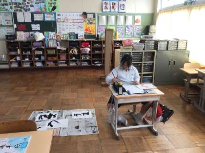 11/4 6年8組書写 公開日 2025/11/04 更新日 2025/11/04 各学年から 8組書写では、書き初めの練習をしました。6年生は「満天の星」というお手本です。お手本をよく見て集中して書きました。