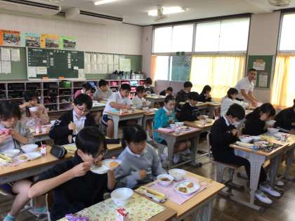 今日の献立は豚丼です。コロッケもあって大喜びで食べていました。まさに食欲の秋!
