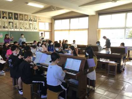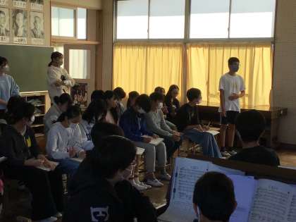 11/6 6年音楽2 公開日 2025/11/06 更新日 2025/11/06 各学年から 6年音楽では、互いの演奏を聴き合い、よいところを見つけて自分たちの学級で取り入れていきたいこと、まねをしてがんばっていきたいことを伝え合いました。