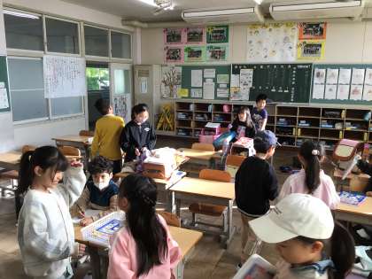 今日はフッ化物洗口があるのでコップの準備をしたりしていました。時間を意識した行動ができていますね。