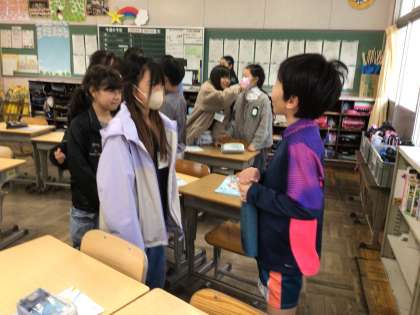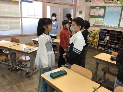 11/10 4年生外国語活動 公開日 2025/11/10 更新日 2025/11/10 各学年から 文房具の英語を復習した後、「Do you have 〜」を使って、持っている文房具を友達と尋ね合いました。友達の答えにリアクションをしながら、明るく英語で会話ができました。