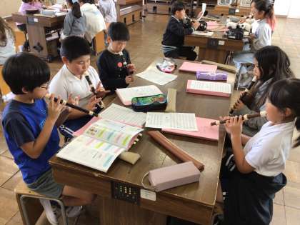 4年音楽では、「互いの音を聴きあって演奏しよう」というめあてで学習を進めていました。リコーダーで「オーラ リー」をグループアンサンブルにチャレンジしたり、「ゆかいに歩けば」の後半部分を合唱したりしました。
