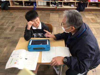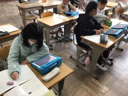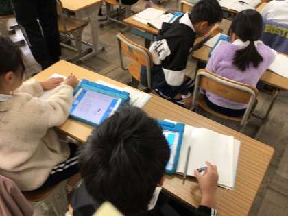 3年国語では、「道具のひみつを伝えよう」のところを学習をしています。学習用タブレットで調べながら、ノートにまとめていました。