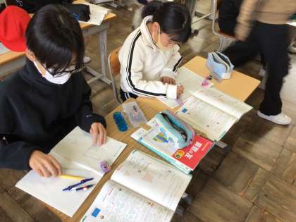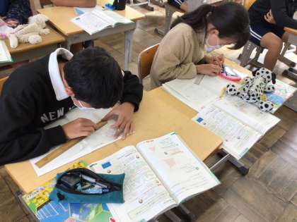 11/11 6年算数 公開日 2025/11/11 更新日 2025/11/11 各学年から 6年算数では、図形の拡大と縮小の単元を学んでいます。「1つの頂点を同じにした拡大図や縮図をかこう」というめあてで学習を進めていました。