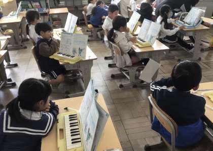 11/12 1年生音楽 公開日 2025/11/12 更新日 2025/11/12 各学年から 1年生音楽では、鍵盤ハーモニカを使って、「せんりつ」をつくり、せんりつのよびかけっこをしました。その後「くるみ割り人形の行進曲」をききました。